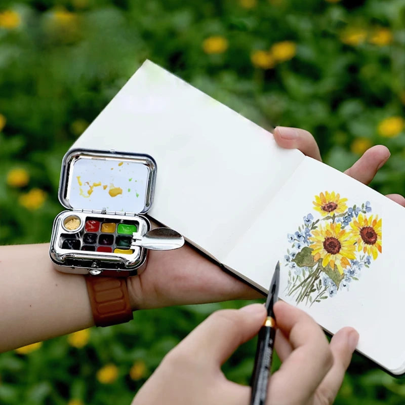 Notre kit de peinture compact garantit que l'inspiration est toujours à portée de main, vous permettant de créer et de découvrir la beauté où que vous alliez - un parc serein ou un café confortable.
